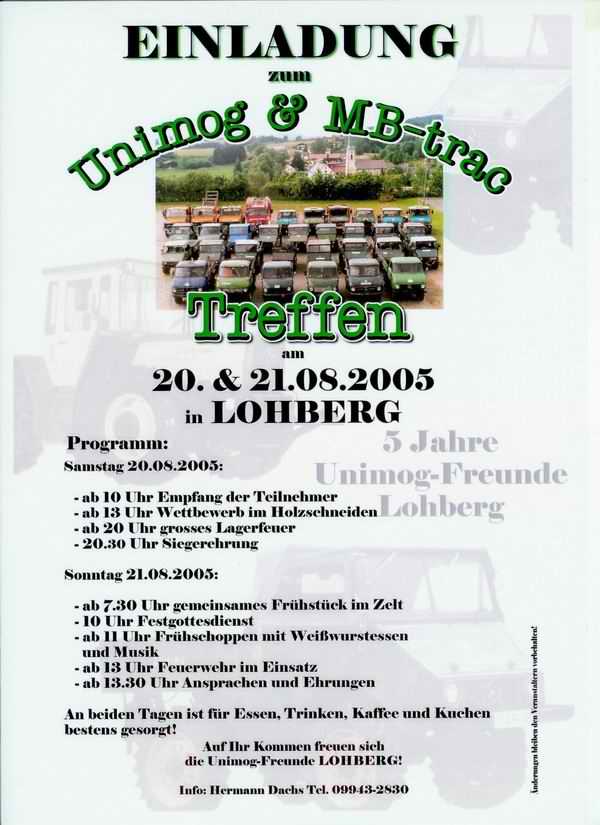 20. / 21. August 2005 3. UNIMOG & MB-Track-Treffen & 5 Jahre Unimogfreunde-Lohberg