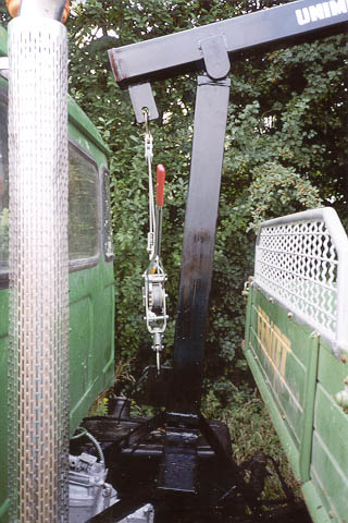Der mechanische Kran mit Greifzug kommt auf ca. 800,00 DM und 2-3 Tage Arbeit für einen Mann.